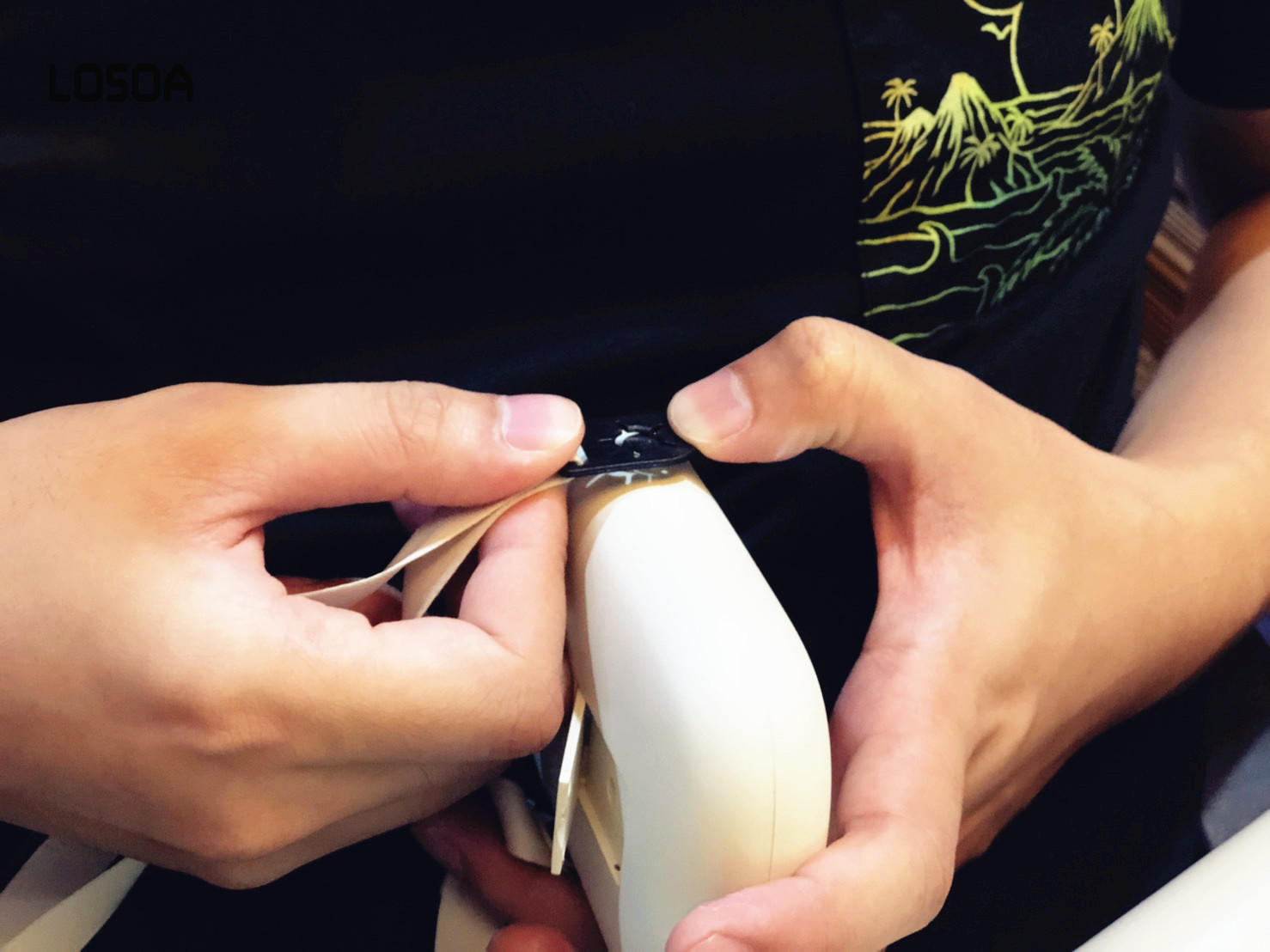 只要對準機身的金屬鉚釘,雙手平均按下!